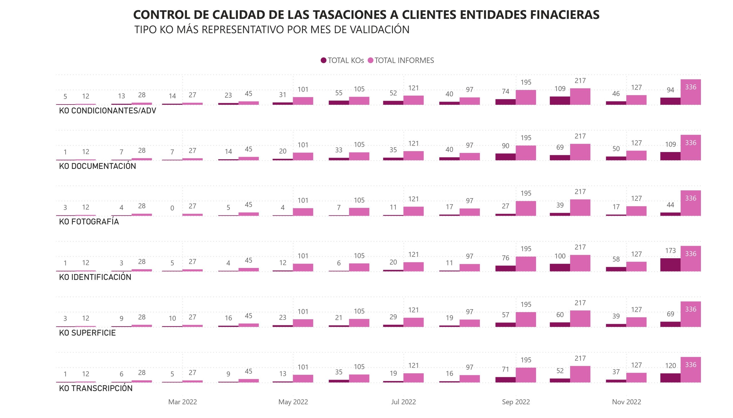 The appraisal company, with a decentralized structure through its branches, needed to improve the quality control of its appraisal reports to ensure consistency, accuracy, and compliance with established standards. Various discrepancies were detected between branches, along with high variability in audit results, particularly in aspects such as documentation, identification, transcription, and surface area of the reports.